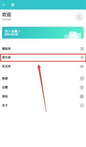 1、用户进入应用点击“提示库”。