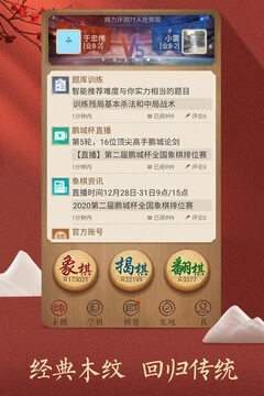 直播全国象棋甲级联赛,跟着高手的节奏,持续提升棋艺。