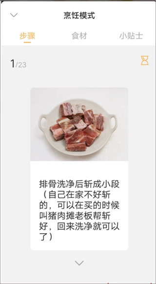 4、制作过程中,用户能在个人收藏里找到对应的菜谱,还可以在页面上选择【烹饪模式】,这样能更方便地按照菜谱进行烹饪操作!