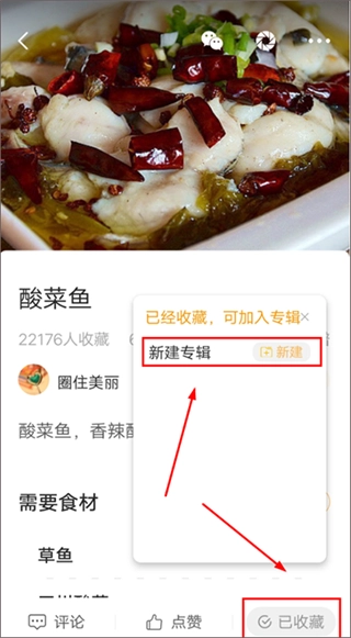 3、用户能够把食谱添加到收藏夹里,还可以自行创建专辑,对自己收藏的食谱进行分类,这样后续制作时查看起来会更方便!