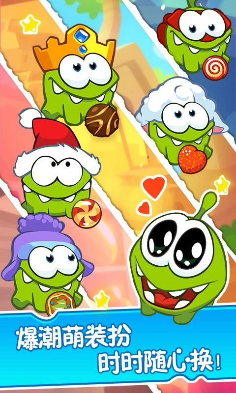 4. 丰富的角色和道具:游戏中不仅有可爱的主角Om Nom,还有多种不同的角色和道具可以解锁和使用,增添了游戏的多样性。