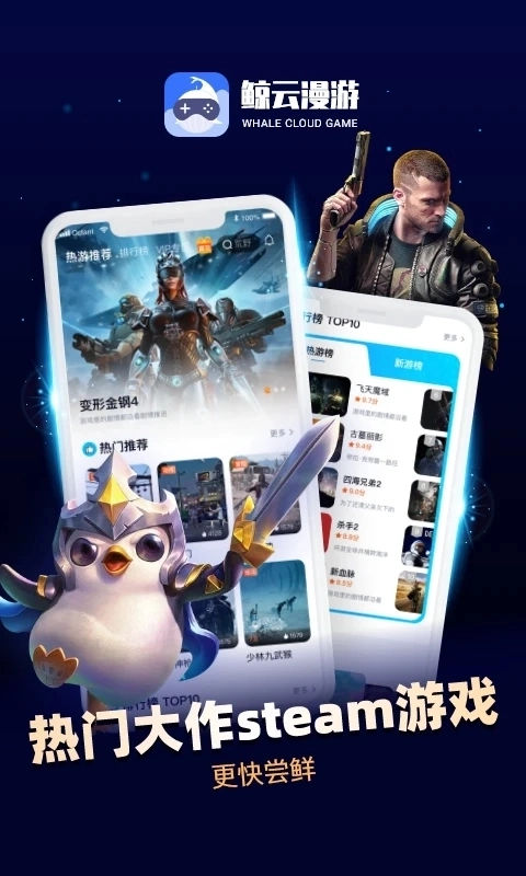 无需:鲸云漫游采用云技术,用户无需游戏,只需通过云端进行游戏,节省了用户的存储空间。