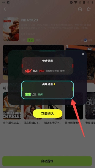 5、选择通道进入游戏;
