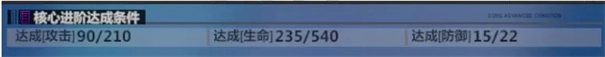 2、核心进阶从第2次开始,进阶条件就要求攻击、生命、防御都达到相应的数值,越往后进阶,要求的数值会逐步提高