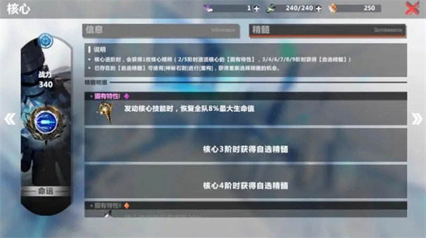 3、当核心进阶到3阶、4阶、6阶、7阶、8阶、9阶时,会分别得到1枚【自选精髓】,由于精髓有品质上的差异,因此建议优先选择品质更高的精髓。