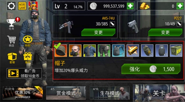 想要提升武器的威力,点击强化按钮,让你的武器更具杀伤力。