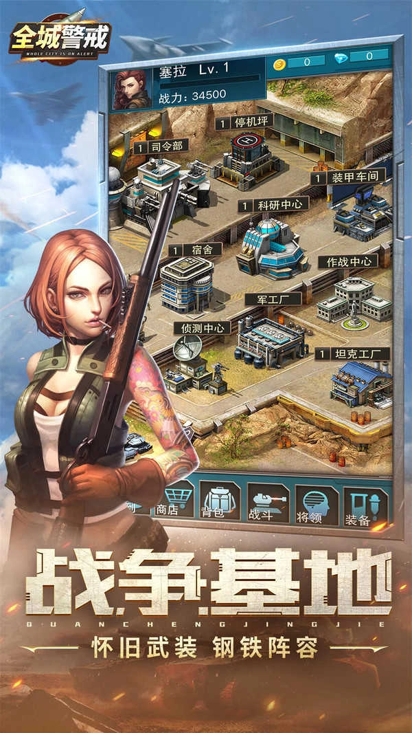 《全城警戒》是以军事战争为背景,围绕坦克与多兵种展开的SLG策略游戏;指挥官可通过抢占资源、招募部队、研发科技,打造专属的王牌军团。全球战火,剑拔弩张!逐鹿沙场,谁与争锋!调兵遣将,智谋定胜负!沉浸式的战争对决,指挥官,这场盛宴不容错过。这里是钢铁洪流的角斗场——修筑防御要塞,升级核心科技,组建坦克集群并加入军团,凭硬实力横扫战场。坦克的热血疆场,等你驾驭!