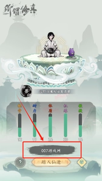 2、接着给自己取一个好听的名字后点击踏入仙途