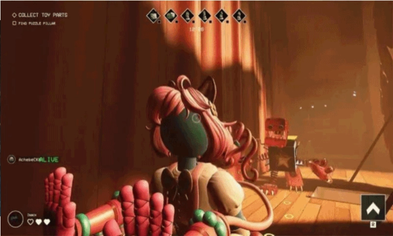 1、玩家将以第一人称视角展开探索,代入感十足,过程中可完成各类谜题,收集玩具部件,将其放入玩具机合成巨型玩具后搬上火车逃离,即可顺利完成这些趣味挑战。