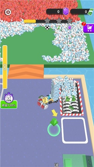 3、这是一款轻松休闲的经营类游戏,玩法类似收废品赚钱:玩家驾驶车辆前往不同场景,快速收集各类物品,随后将收集到的物品运至指定地点兑换金币;接着用金币升级车辆的载重能力、收集范围等属性,还能解锁更多新的游戏内容。
