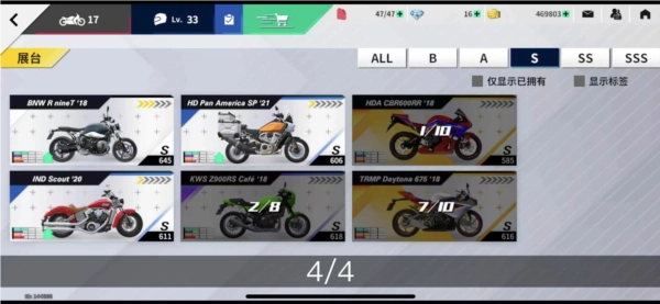 4、上百种摩托车可供选择,支持多重涂装,打造个性化豪华车库。