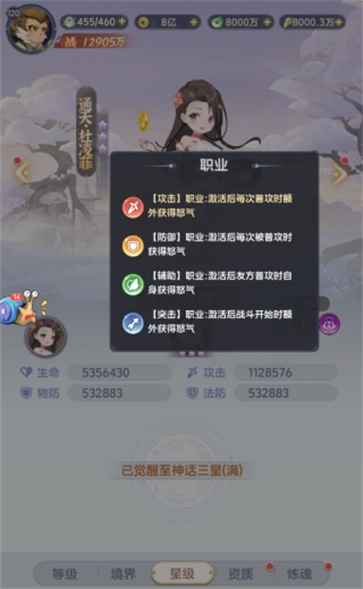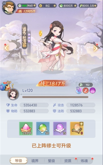 2、那么要如何提升修士的战力呢?首先可以从培养方面着手,培养主要涵盖等级、境界、星级、资质、炼魂这几个维度。天骄们通过收集所需的资源,就能对修士进行升级或升星操作。