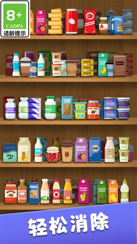 1、在货柜消消消游戏中,玩家可以通过将三个相同的物品移入柜子来消除它们。