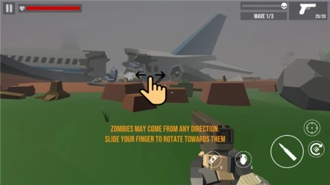 4、当僵尸靠近时,左右移动枪支并点击射击,记得优先瞄准头部,这样一枪就能解决,要是打偏了就得耗费更多子弹。