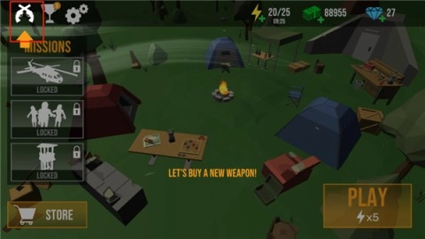 1、打开游戏后,点击左上角的枪支图标,这里是你武器库的入口;