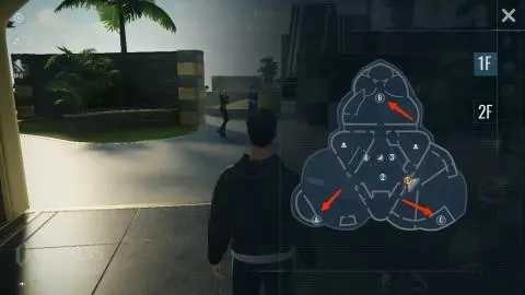 进入游戏后,点击左上角的地图图标,地图就会放大。从图中可以看到,A、B、C三个位置是需要破译的点位。由于我们离C点的距离最近,所以应该直接前往C点开展破译工作。
