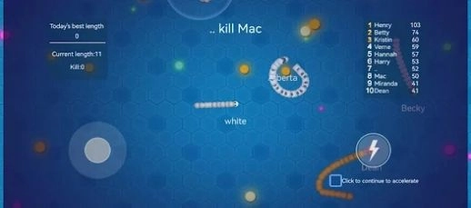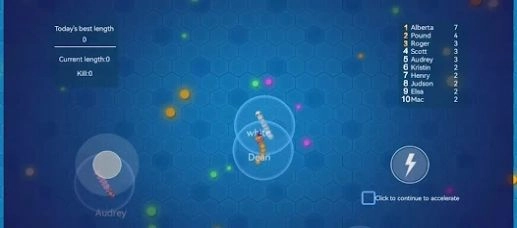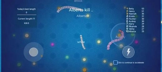 3. 拾取地图上的食物材料来延长蛇身,让自己变得更强大,从而击败对手并吞并对方。