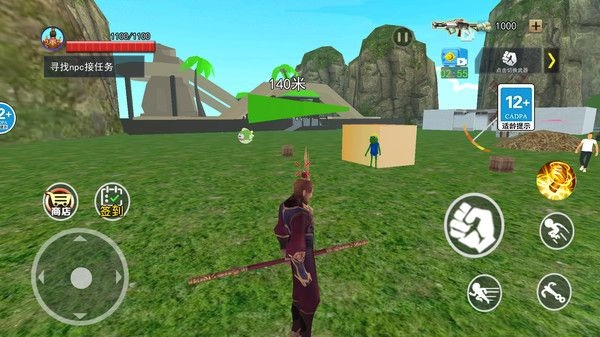 1、悟空角色解锁开始战斗,还有不同的沙盒世界背景可以解锁对战