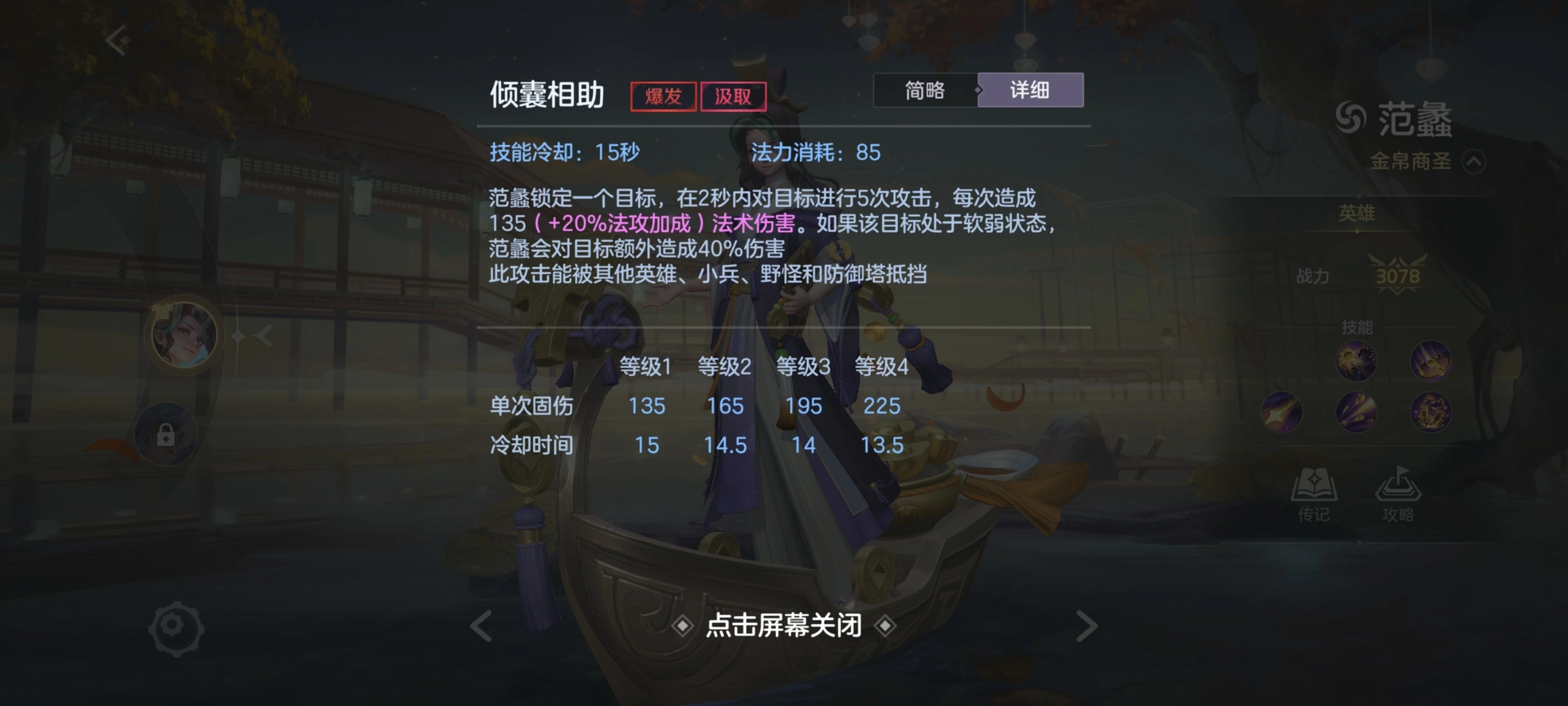 范蠡的3技能叫做:倾囊相助