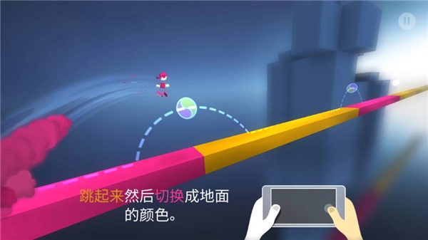 游戏的核心并非规避突然出现的障碍或敌人,而是依据平台的颜色调整角色自身的颜色,如此跑酷进程方可延续。