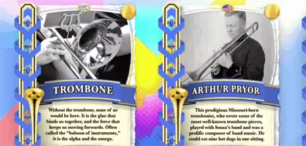 3、多种不同的元素场景,各种著名的长号演奏手将会出现其中,进行指尖的演奏,畅享长号的无穷魅力。
