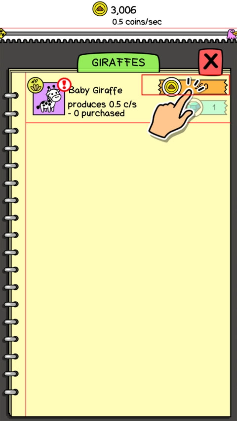 2、点击左下角的长颈鹿图标,购买一只新的长颈鹿并将其放置到屏幕上。