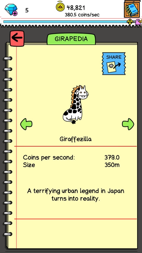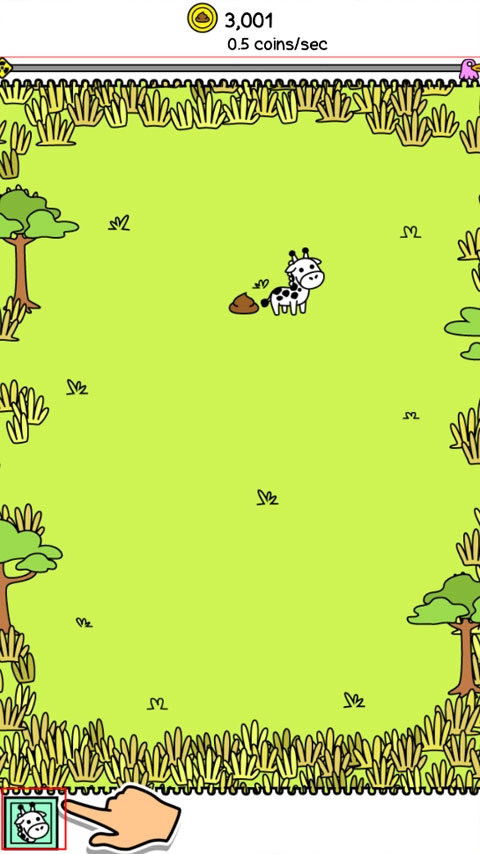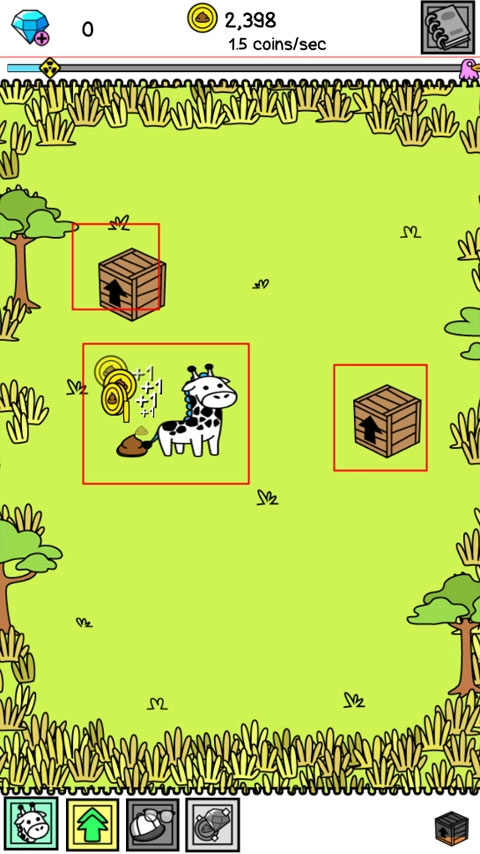 游戏开始时,点击箱子就能获得长颈鹿,而长颈鹿的粪便会转化为金币。