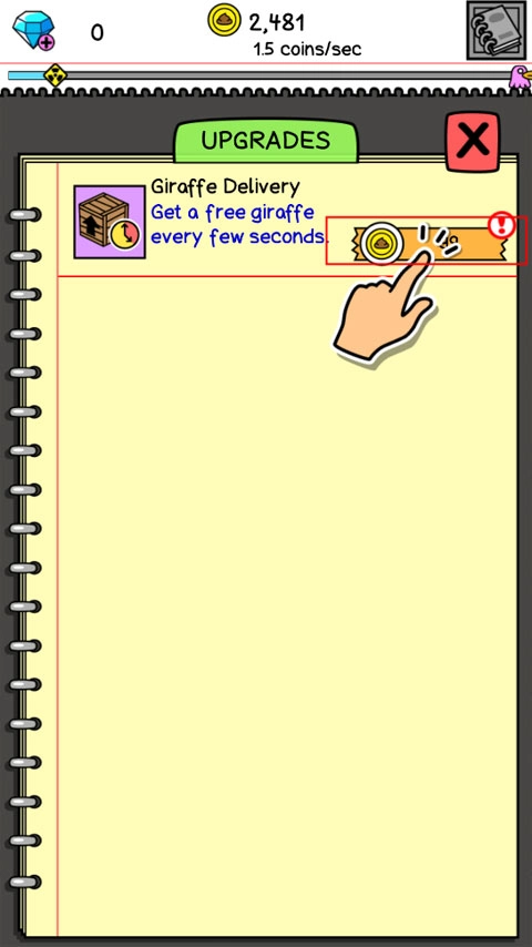 4、接着点击下方的双层树图标,把箱子购买到屏幕上,箱子里会出现新的长颈鹿,而且多次点击长颈鹿能够快速拉出粪便,从而获取更多金币。