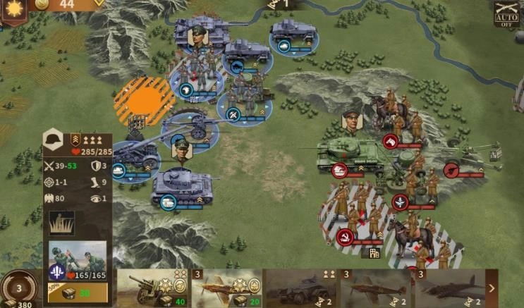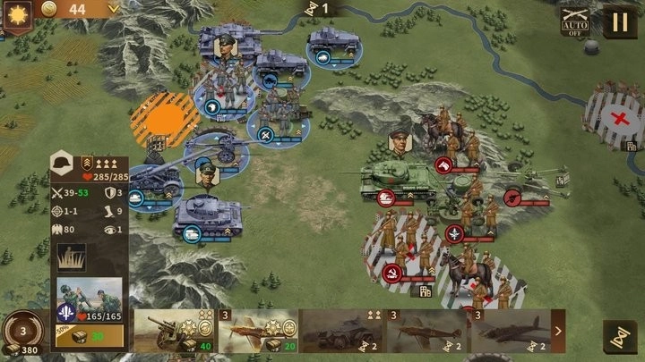 炮兵天生机动能力弱于坦克,所以行军能力尤为关键。炮兵部队最好能抢占先机进行消耗,就像朱可夫指挥的炮兵能及时跟上大部队,抢先把敌方重型坦克打残;而里布麾下的炮兵可能会差那么一两格距离够不着目标,只能等到下一回合再过来收拾残血单位。