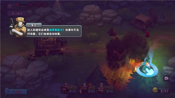 4、点击指挥官能力,把它拖到敌人密集的区域,就能触发大范围伤害效果。