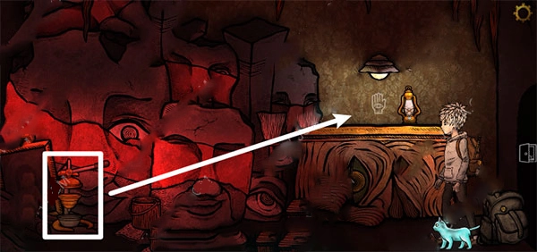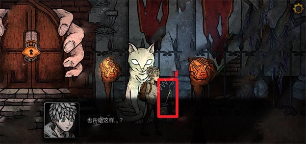 5、进门一直往右走,剧情过后逗猫棒放在书包里,继续往右走,注意手背上有宝石的手指,右边有一个箱子,根据38421,点击后打开箱子,拿到红色种子。