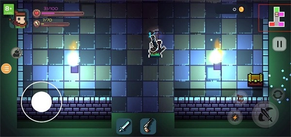 1、十分经典的地牢闯关冒险游戏,操纵角色自由的进行战斗。
