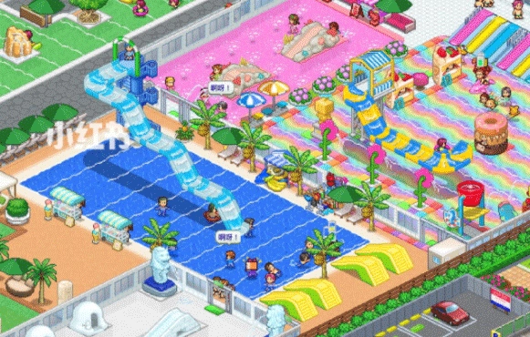 2、搭建水上滑道等各式各样的游乐设施,并依照您的喜好来自定义内部装潢。