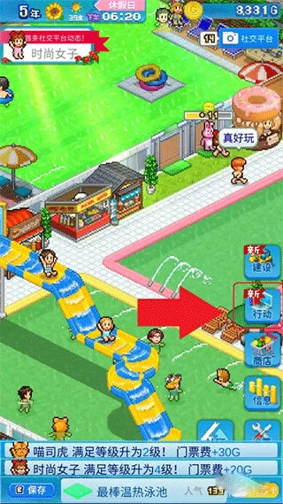 1、打开游戏进入游戏中,选择点击造水上乐园设施。