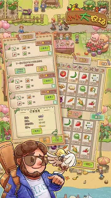小小大农场是一款农场建设模拟经营类游戏。在游戏里,你将化身为农场主,亲自开垦并耕种肥沃的土地,用心照料家禽与牲畜,逐步打造属于自己的农业帝国。游戏中还设有多样的商业玩法,你既可以把农产品零售给附近的街坊邻居,也能承接订单送货上门,甚至可以通过码头进行批量销售,以此让收益进一步提升!除此之外,餐饮和露营等副业经营模式,让你的农场不再仅仅局限于农业生产,更成为了一处充满生机的休闲好去处。在这里,没有繁杂琐碎的事务,只有温馨且治愈的田园景致。