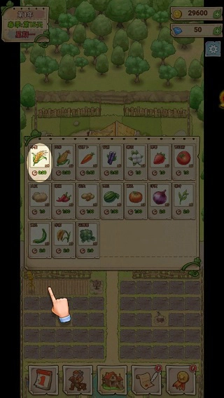 现在耕地条件已经具备,可以开始播种作物了。具体操作步骤如下:点击已耕地的位置,选择想要播种的作物种类,接着滑动屏幕,就能把作物种子全部播撒到农田中。