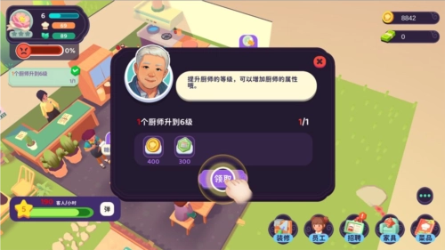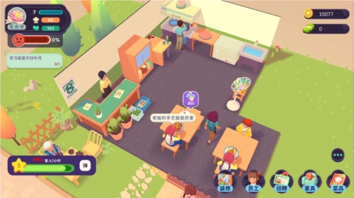 3、玩家还可以通过招聘新员工和培训旧员工来提升餐厅的整体实力,让餐厅在竞争激烈的市场中脱颖而出。