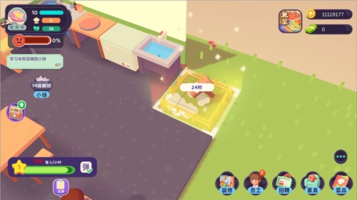 清理:在客人走后桌面上会出现清扫气泡,清扫好桌子下一位客人才会来,所以一定要记得及时清理。