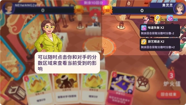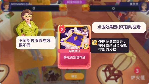 还有一件事!炉火值不会累计到下个回合,要用厨技打败厨技!