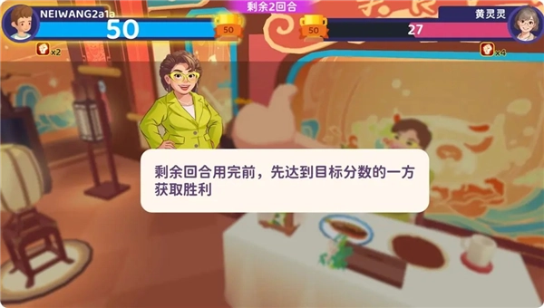 剩余回合用完前,先达到目标分数的一方获取胜利。