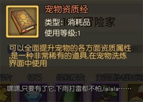 宠物资质分为两种情况:一种是有50%概率出现全属性都比较均衡的宠物,这类宠物后期提升所需的成长丹和资质经相对较少;另一种同样是50%概率,会出现部分资质极高,而其余资质却非常低的情况。