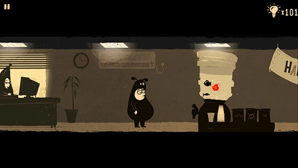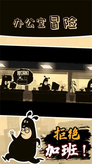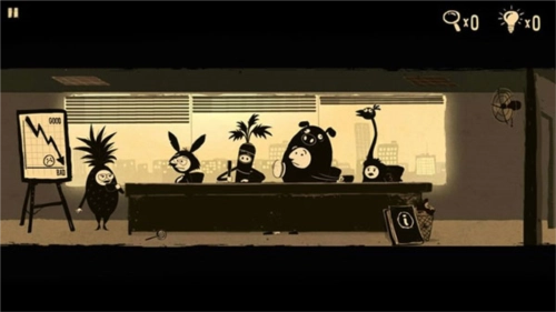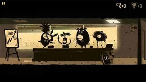 4、本作的画面设计极具特色,整体色调偏暗沉,以黑色与黄色为主,这种类似老电影的色彩搭配,使游戏整体氛围趋于消极、沉闷,恰好凸显出办公室环境的压抑感。而作为游戏目标的红色不明飞行物,其出现与整个画面形成强烈反差——它象征着自由与活力,这种与主题基调相悖的设计,让游戏的故事层次更为丰富,这也正是本作的魅力所在。