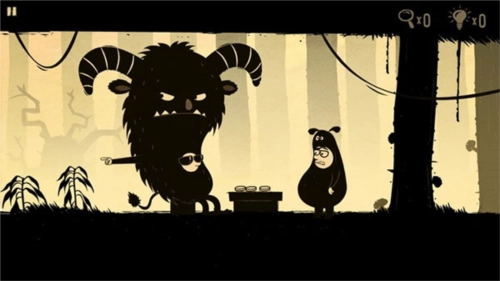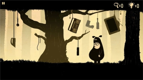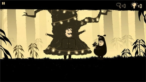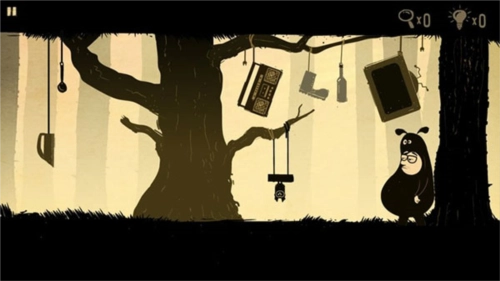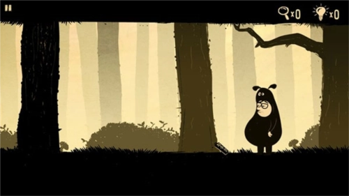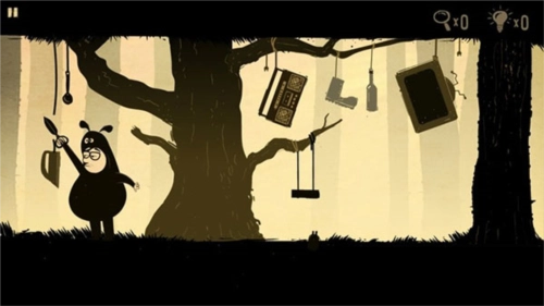 3、游戏进入中期后,画面主题发生转变——主人公穿过通风管,来到一片树林里,还会遇到伪装成树的人和像猴子般蹲在树上的家伙。游戏环境从单调的办公室切换到神秘清新的小树林,场景变化让游戏格调也随之改变。结合此前走出办公室、躲避老板、修改工作绩效的情节,主角仿佛不再需要待在公司,转而能走向户外体验另一种生活。尽管游戏剧情没有直接表述,但这种场景转换本身就暗含了一种叙事,可谓“无声胜有声”,游戏的故事性也通过这种手法得到了升华。