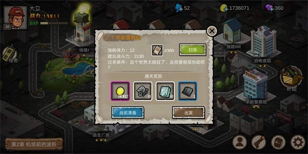 2、第二章第7关刷弹夹(求助警察局):从这一阶段起,玩家就能反复刷2-7关卡来获取大量弹夹,手动挑战或扫荡关卡均可。该关卡玩家只需清理完第一层的僵尸,第二层可直接开门让炮哥协助战斗。弹夹是玩家闯关的关键资源,尽管关卡内显示的弹夹数量仅为3个,但实际可使用背包中所有的弹夹储备。只要愿意消耗弹夹来刷关,推进到3-3关卡并不困难。