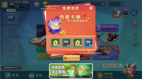 2、每日免费装备卡包,最多2次。喜欢关卡玩法的主公们,一定不能错过哟。