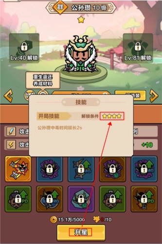 武将提升到等级极限后还可以进行升星进阶,提高武将星级,解锁更多武将技能。