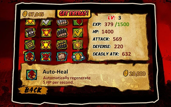 游戏第三关,可开启道具第一滴血,可增加生命值十点,售价700金币。