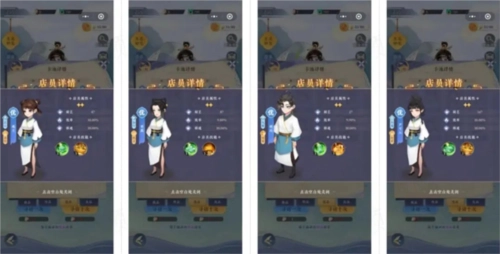 同时店员还有五种不同的气韵:玲珑、知行、天机 、风雅与匠心。掌柜培养时要注意一下不同店员的气韵哟,同气韵的店员会有厨艺加成,这可是我们日后提升厨艺的秘密武器。