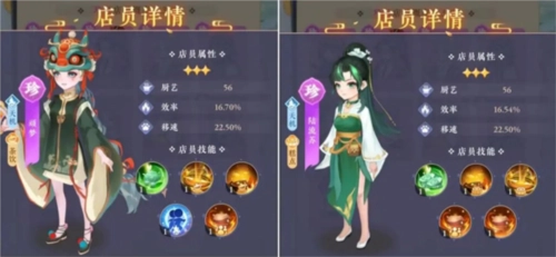 所以在店员的招募中,不要单纯的追求基础厨艺的高低,星级和技能加成对厨艺提升很大,效率速度等属性也同样重要的哦。