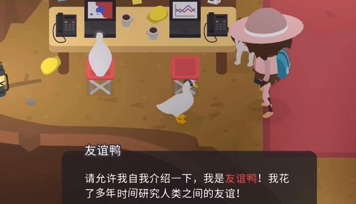 2、接下来跟着握手鸭学习握手的方法,之后前往城镇,找到三十个头上带有黄色感叹号的人并与他们握手。